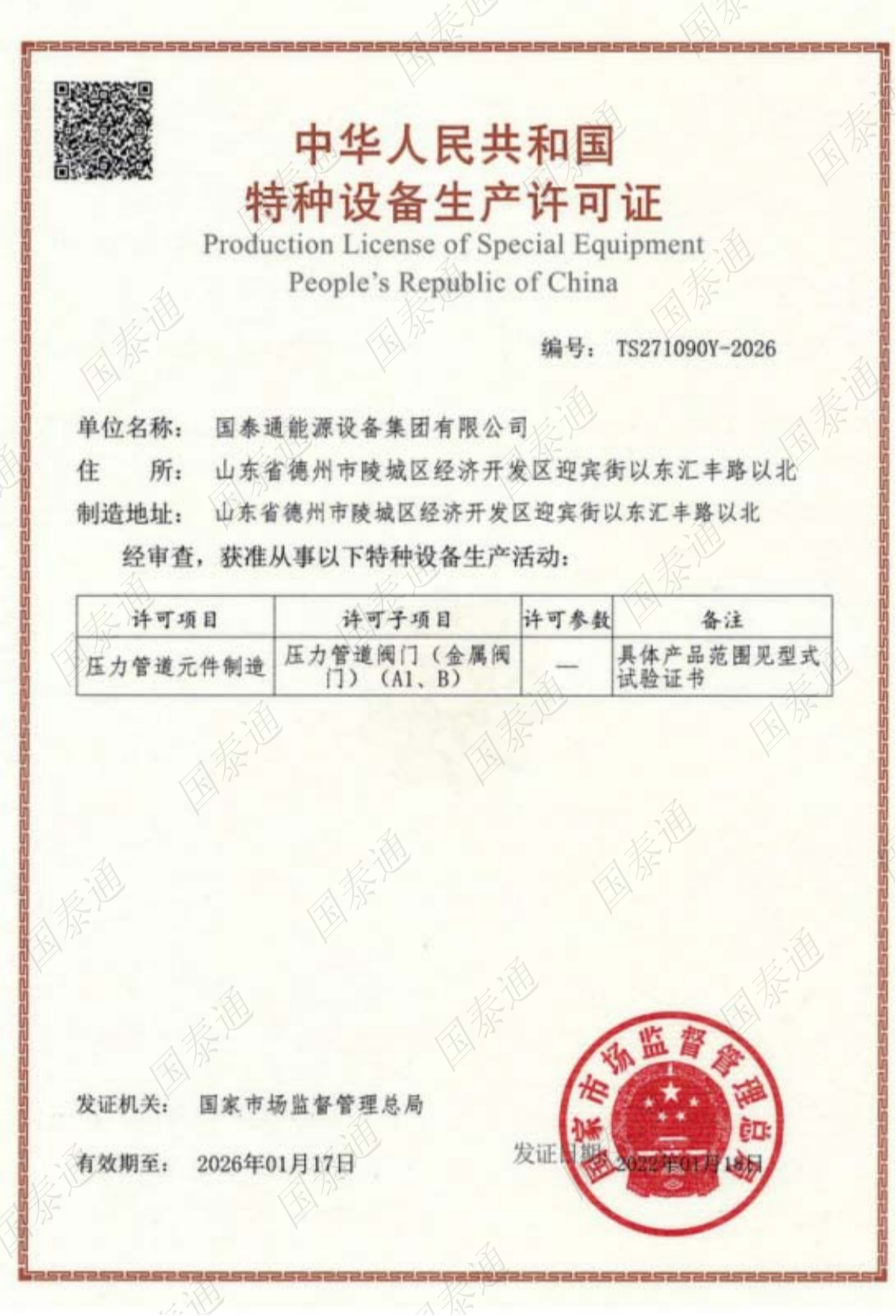 國泰通能源設備集團有限公司是一家國家級高新技術企業,專注于閥門和燃氣調壓輸配設備設計、研發(fā)、生產、銷售、服務于一體的系統集成解決方案服務商。公司成立于2011年,注冊資金10168萬元,擁有北京運營中心和山東生產中心兩大基地,北京運營中心主要承擔集團公司的戰(zhàn)略規(guī)劃發(fā)展,山東生產基地承擔集團公司產品研發(fā)、生產和銷售服務,集團公司山東生產基地占地面積5萬余平方米,總建筑面積3萬余平方米,有著現代化的廠房和辦公大樓。集團公司經過十多年的茁壯發(fā)展,現擁有中、高級工程師27名,生產服務技術人員二百余人......